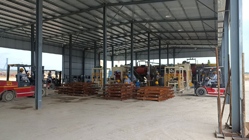 發(fā)貨不是終點(diǎn),確保設(shè)備順利投產(chǎn)并持續(xù)穩(wěn)定運(yùn)行才是我們的目標(biāo)。根據(jù)和客戶(hù)溝通的時(shí)間節(jié)點(diǎn),2023年8月份我司派售后服務(wù)部技術(shù)人員前往印尼現(xiàn)場(chǎng)進(jìn)行指導(dǎo)安裝調(diào)試,通過(guò)和業(yè)主的緊密配合,奮戰(zhàn)30天,兩條QT6-15全自動(dòng)砌塊機(jī),全自動(dòng)離線碼垛機(jī),全自動(dòng)打包機(jī)安裝完成,順利出磚,碼垛,打包。在對(duì)客戶(hù)操作人員進(jìn)行培訓(xùn)又穩(wěn)定運(yùn)行30天后,得到客戶(hù)的確認(rèn)和肯定,我司技術(shù)人員返回國(guó)內(nèi)。
