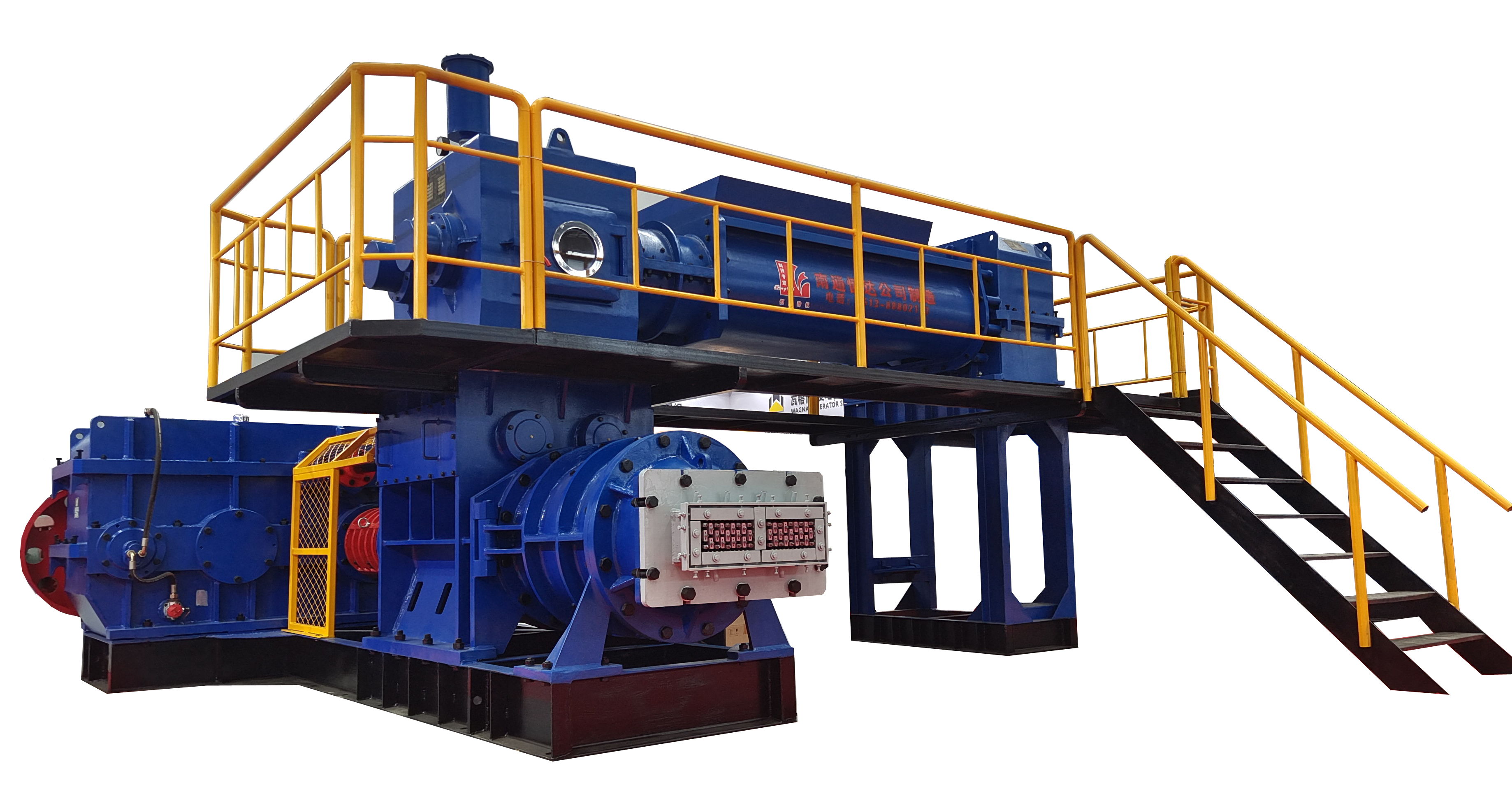 該機(jī)采用上、下級(jí)單獨(dú)傳動(dòng),上級(jí)采用單軸攪拌,箱體采用鋼板焊接,擠出壓力大,適用于高孔洞率,薄壁多孔的頁(yè)巖,煤矸石、粘土磚的硬塑成型。還廣泛用來生產(chǎn)耐火磚,鋪路磚,尾礦磚,鋼渣磚塊,膨潤(rùn)土條,煤炭條,煤球,生物顆粒等。